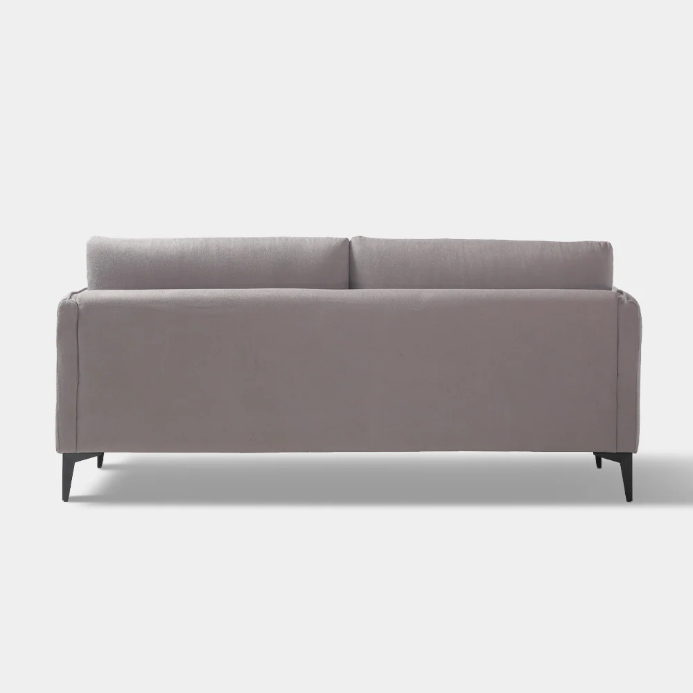 A Modern Contemporary style sectional sofa, made from solid kiln dried gmelina wood, padded in polyurethane foam and upholstered in chennile textured fabric, with black powder coated steel legs.