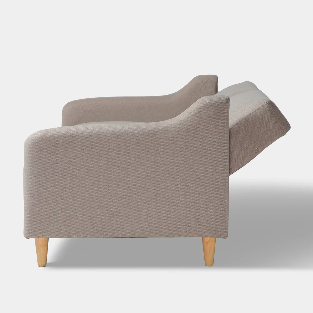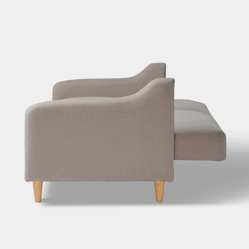 A Modern Contemporary Sofabed upholstered in Polyester Fabric. It’s Sofa look convertible to Sofabed with natural wood legst made it easy for comfort sitting by day and sleeping bed by night.