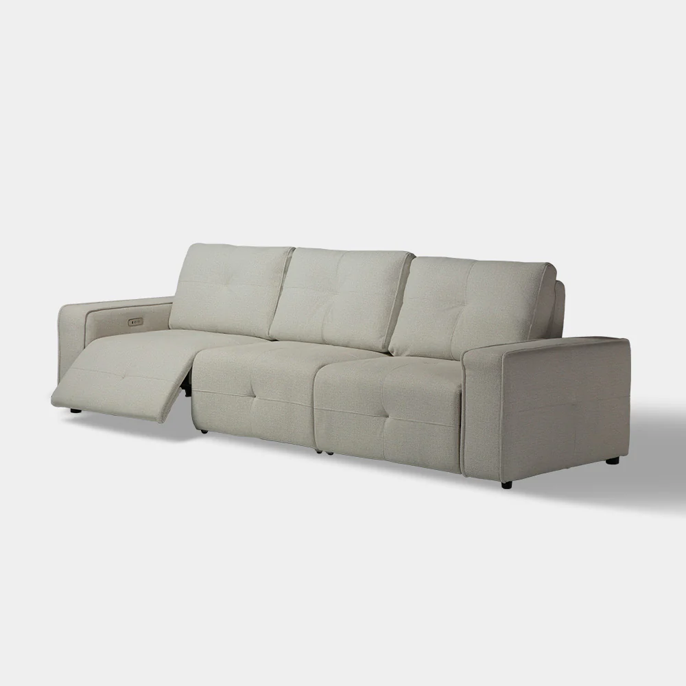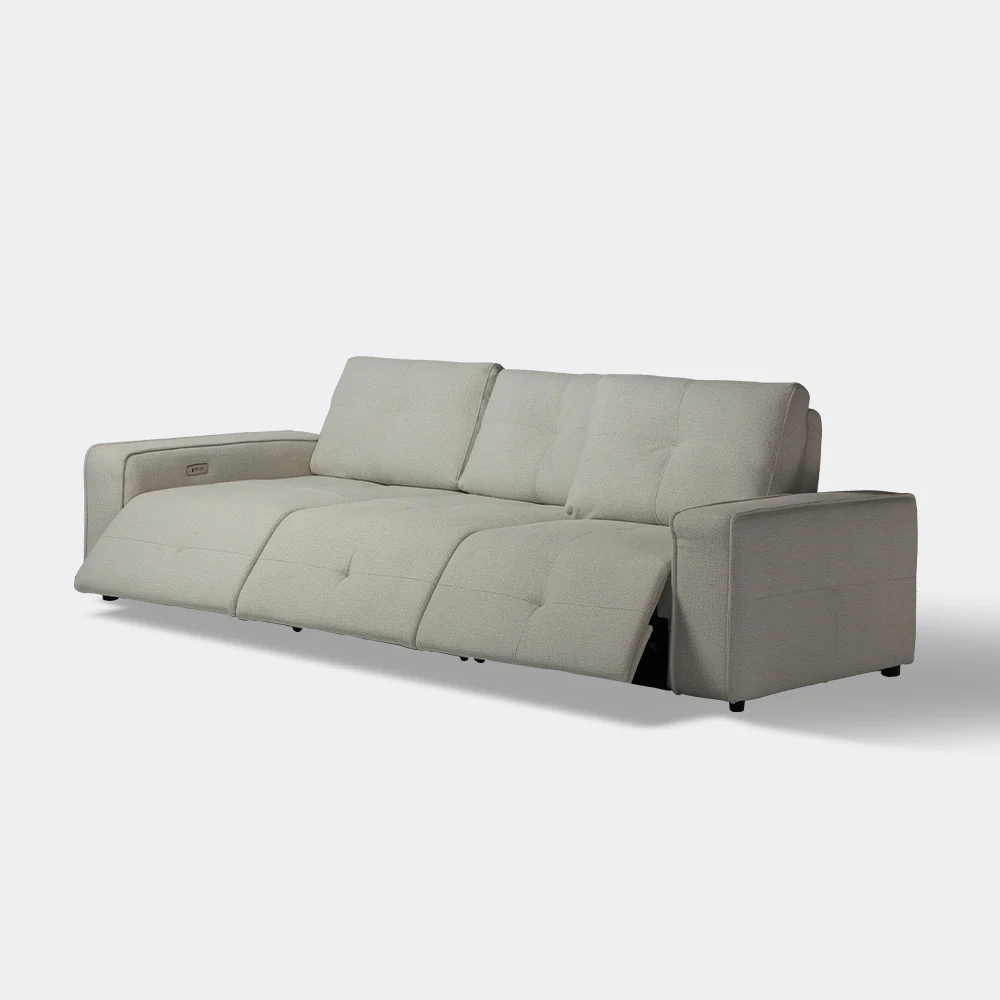 A Modern Contemporary Power Back and extendable/pop-up foot rest reclining function for all seat (left, right and middle part). Soft touch control for ease of use.