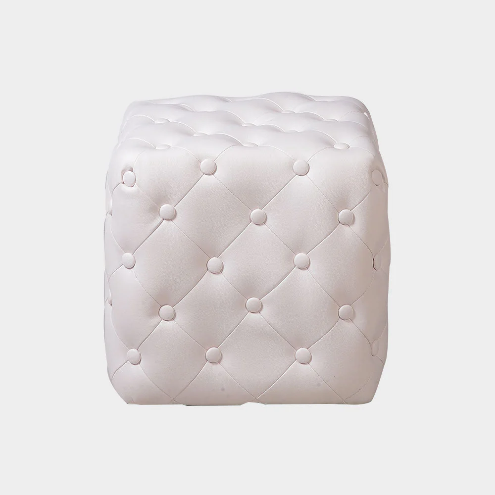 A Classic tufted ottoman in leatherette, solid wood frame with buttons.